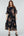Double Second Black Printed Shirring Waist Dress