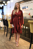 Double Second Red Long Sleeve Lace Pleated Dress