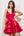 Double Second Red V-neck Lace Dress With Frilled Hem