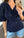 Angeleye Satin Textured Tie Neck Blouse In Navy