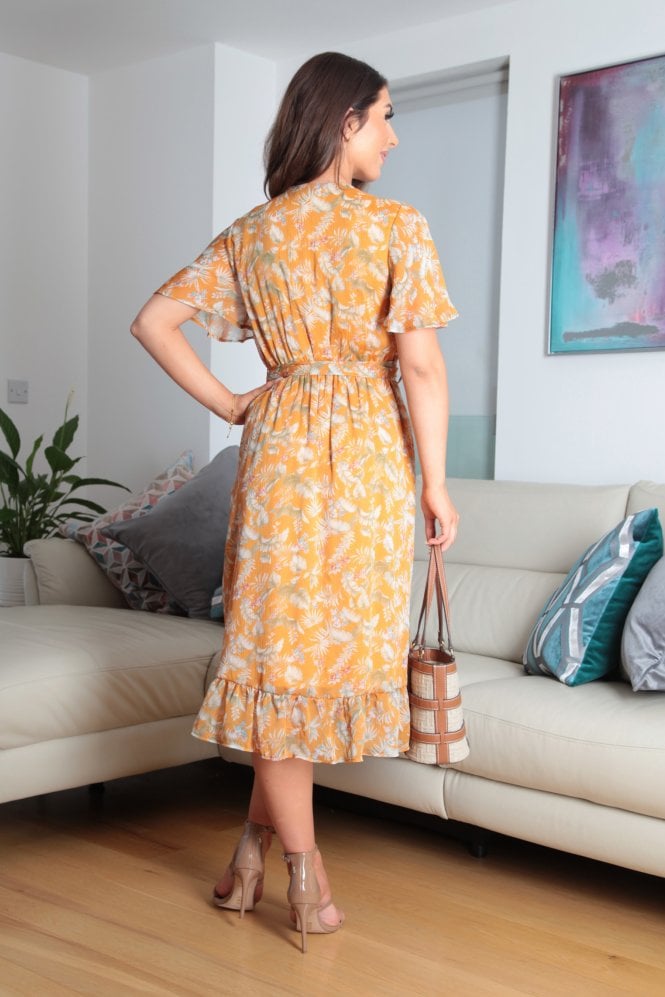 This floral print wrap front dress is perfect for casual weekends, your summer work wardrobe and can also be dressed up for fancy occasions. It boasts a wrap front design with elegant floaty tea sleeves and a frilled high-low hemline. An elasticated waist and a removable tie belt make this dress a cute and comfortable fit.