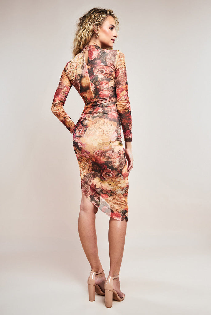 Goddiva Asymmetric Gathered Skirt Midi Dress