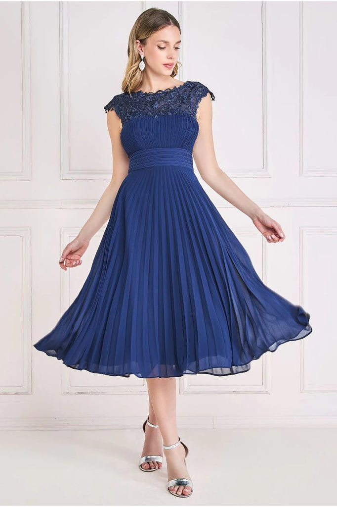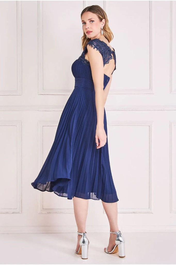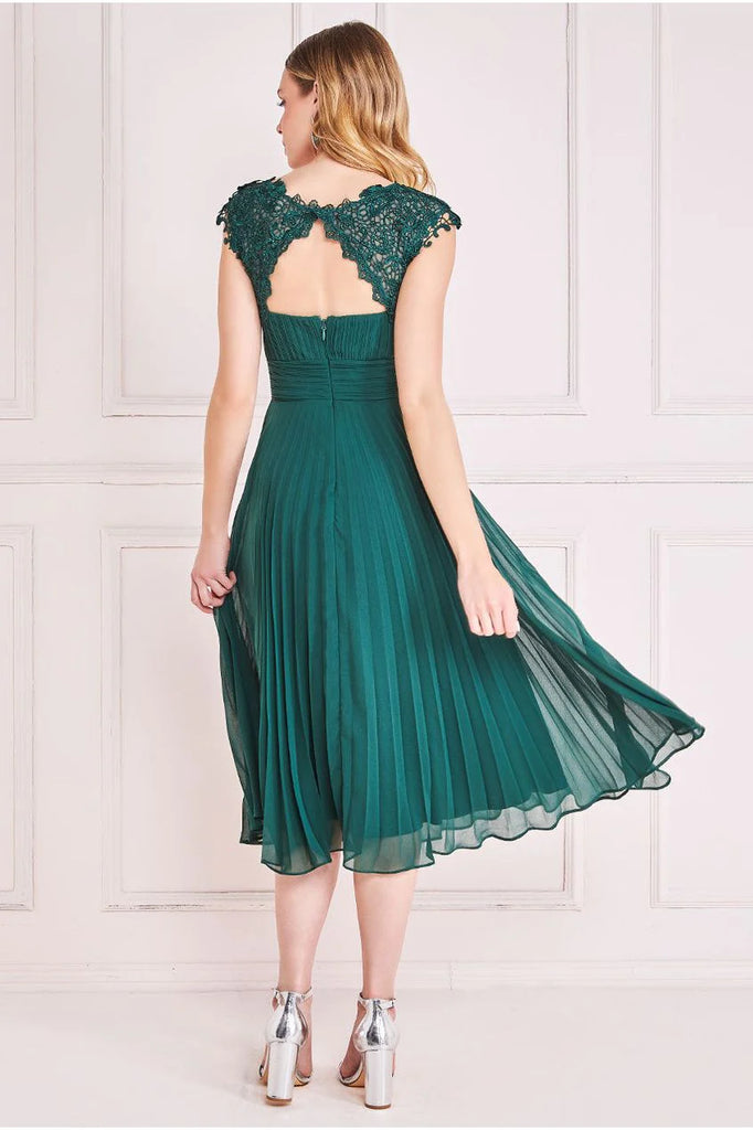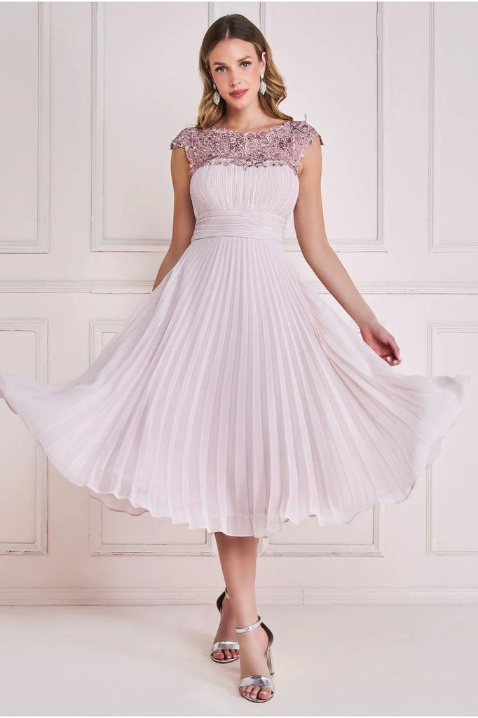 With a round neckline that exudes timeless beauty, this crochet & pleated top midi dress from Goddiva effortlessly captures attention. The delicate crochet detail on the bust adds an air of intricate allure, while the enchanting keyhole detail on the back leaves a lasting impression. The pleated chiffon skirt elegantly flows with every step, offering a sense of movement that's both captivating and graceful. Its capped sleeves provide comfort and a touch of sophistication, making this dress perfect for any occasion. Crafted from the finest chiffon & crochet materials, this midi dress wraps you in an embrace of elegance and luxury. The harmonious blend of textures showcases your unique style while maintaining a sense of classic charm. Embrace the fusion of contemporary design and timeless beauty with our crochet & pleated top midi dress. Elevate your wardrobe with this stunning piece, ideal for weddings, parties, and special gatherings.