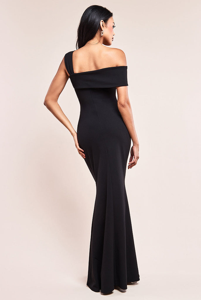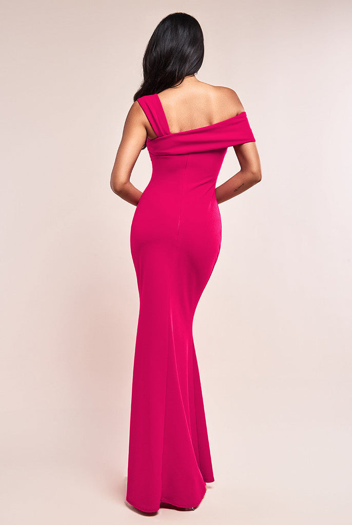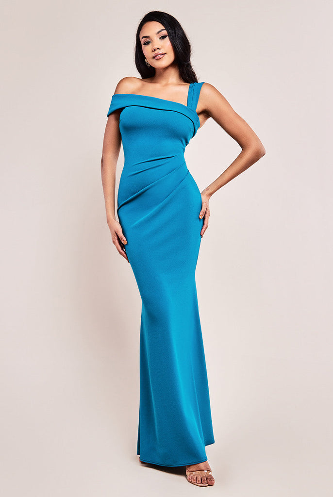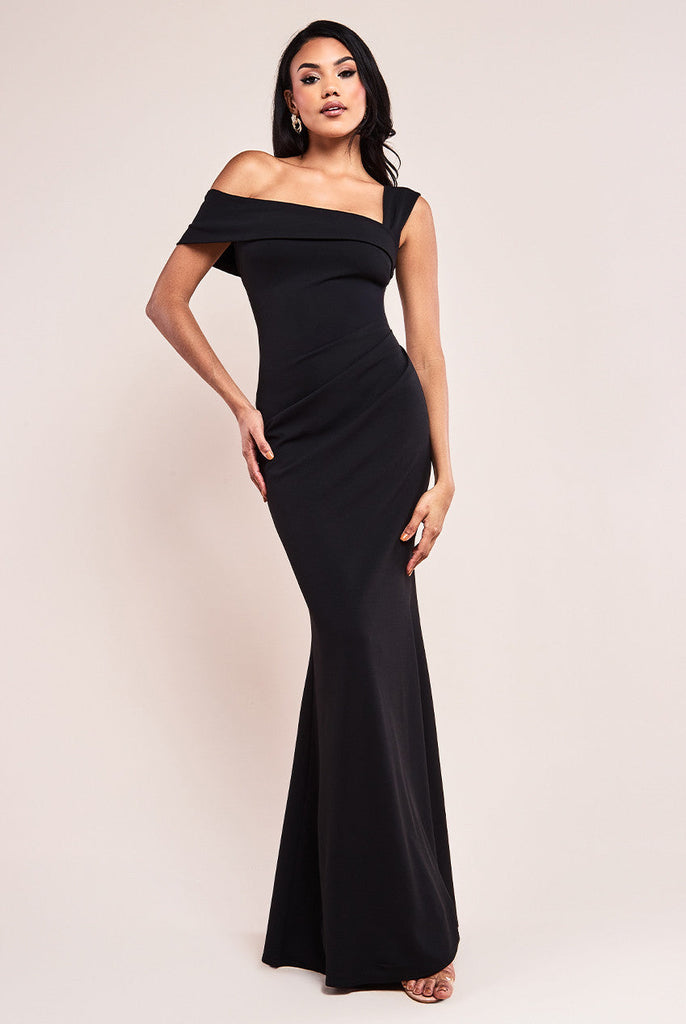 Goddiva Off The Shoulder Pleated Waist Maxi Dress