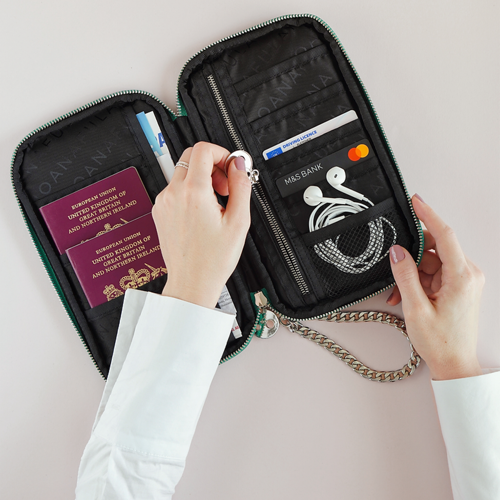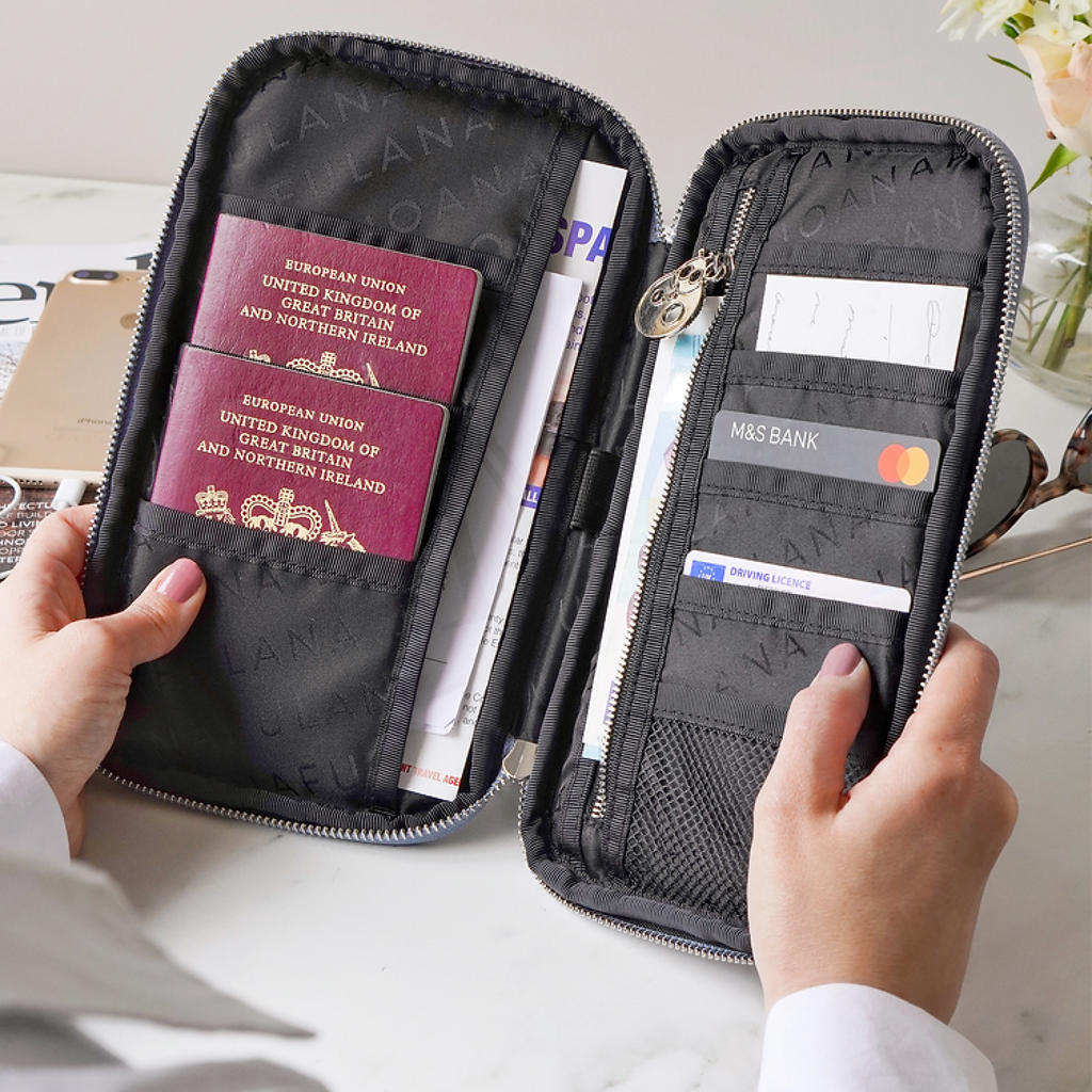 - Large Capacity Design: 5 card slots + 3 passport pouch + 1 boarding pass pocket + 1 zip pocket for cash or changes + 1 outside pocket for mobile + 1 removable chain for carrying convenience.
